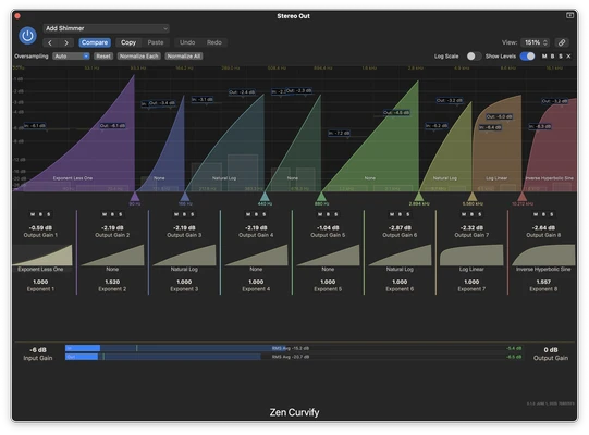 This plugin offers eight bands of dynamics processing, taking the unique approach of selecting a separate, mathematical dynamics curve to be applied to each adjustable frequency band.